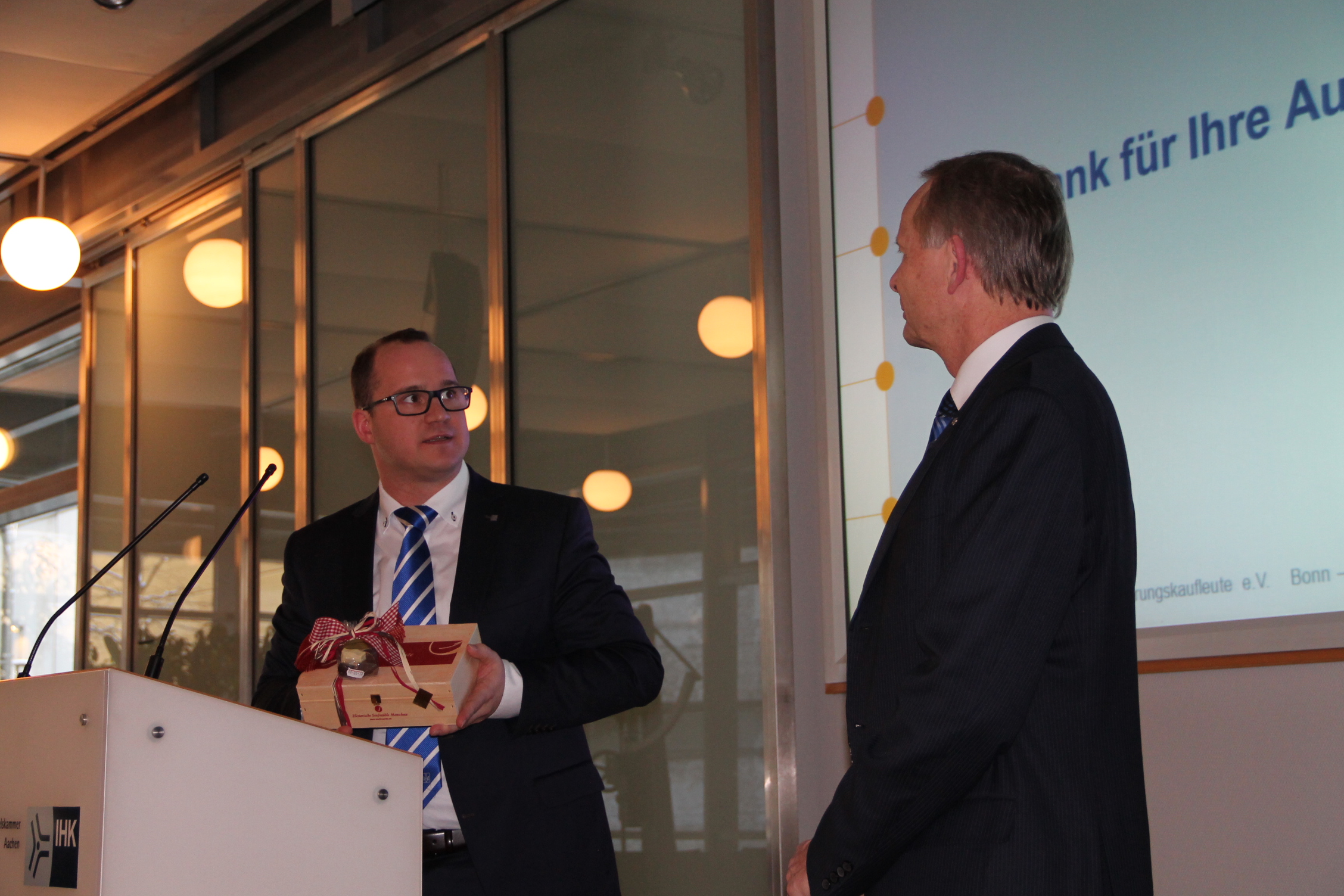 Der Vorstand des Bezirksverbandes bedankt sich herzlich bei Herrn Zander für seinen Besuch in Aachen. Außerdem gilt großer Dank der IHK-Aachen für die gute Zusammenarbeit und die gemeinschaftliche Durchführung der Informationsveranstaltung.
